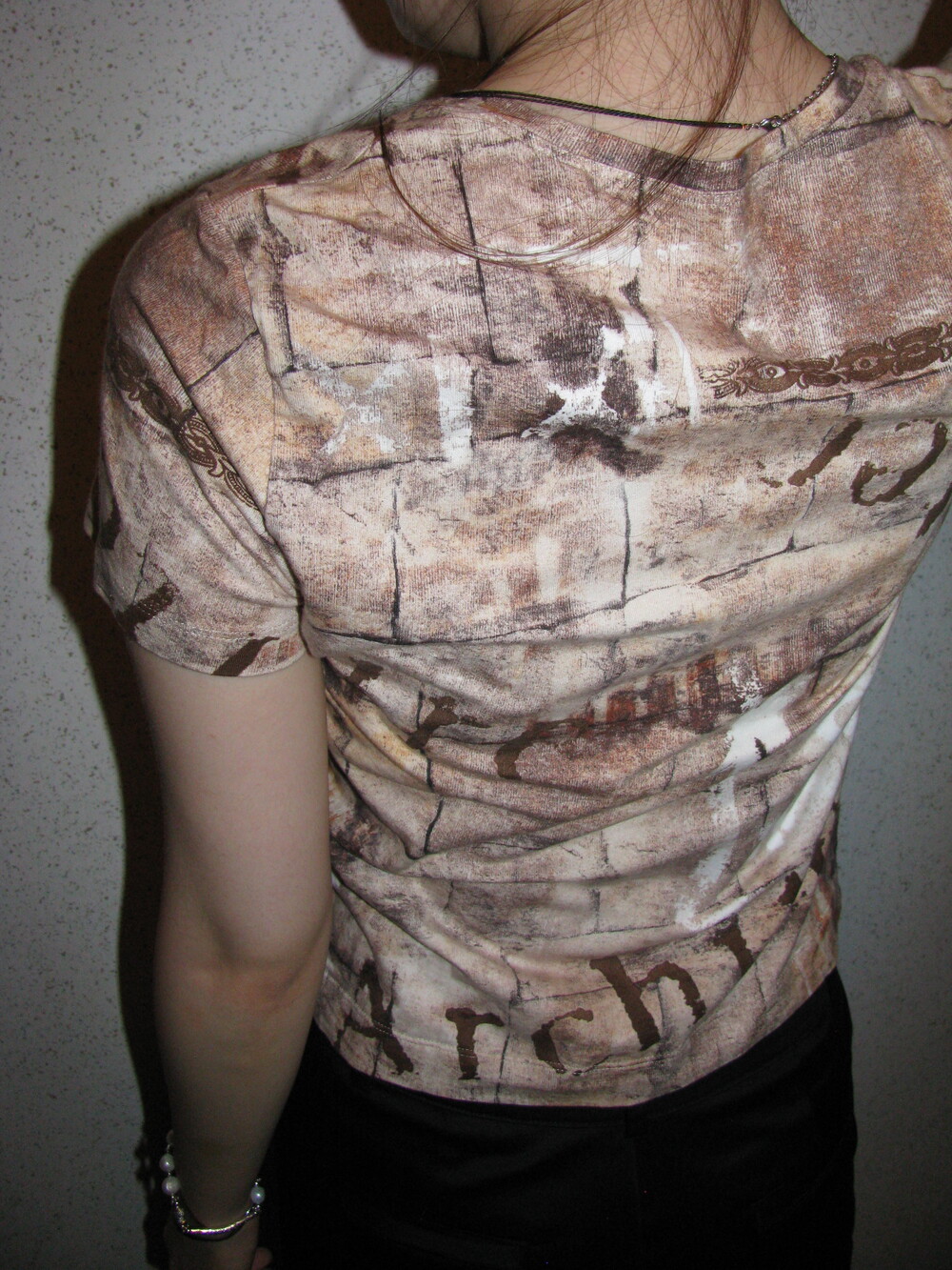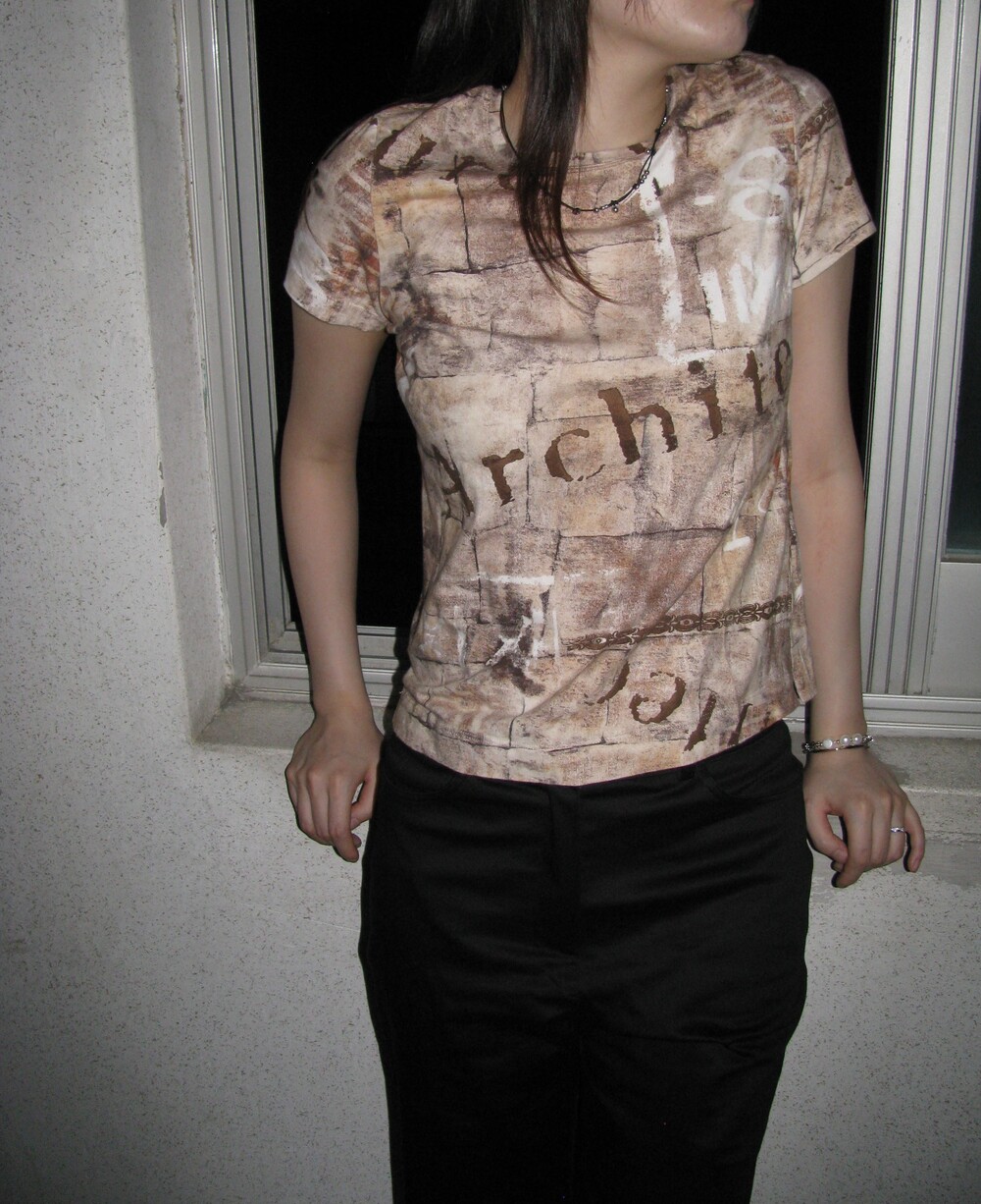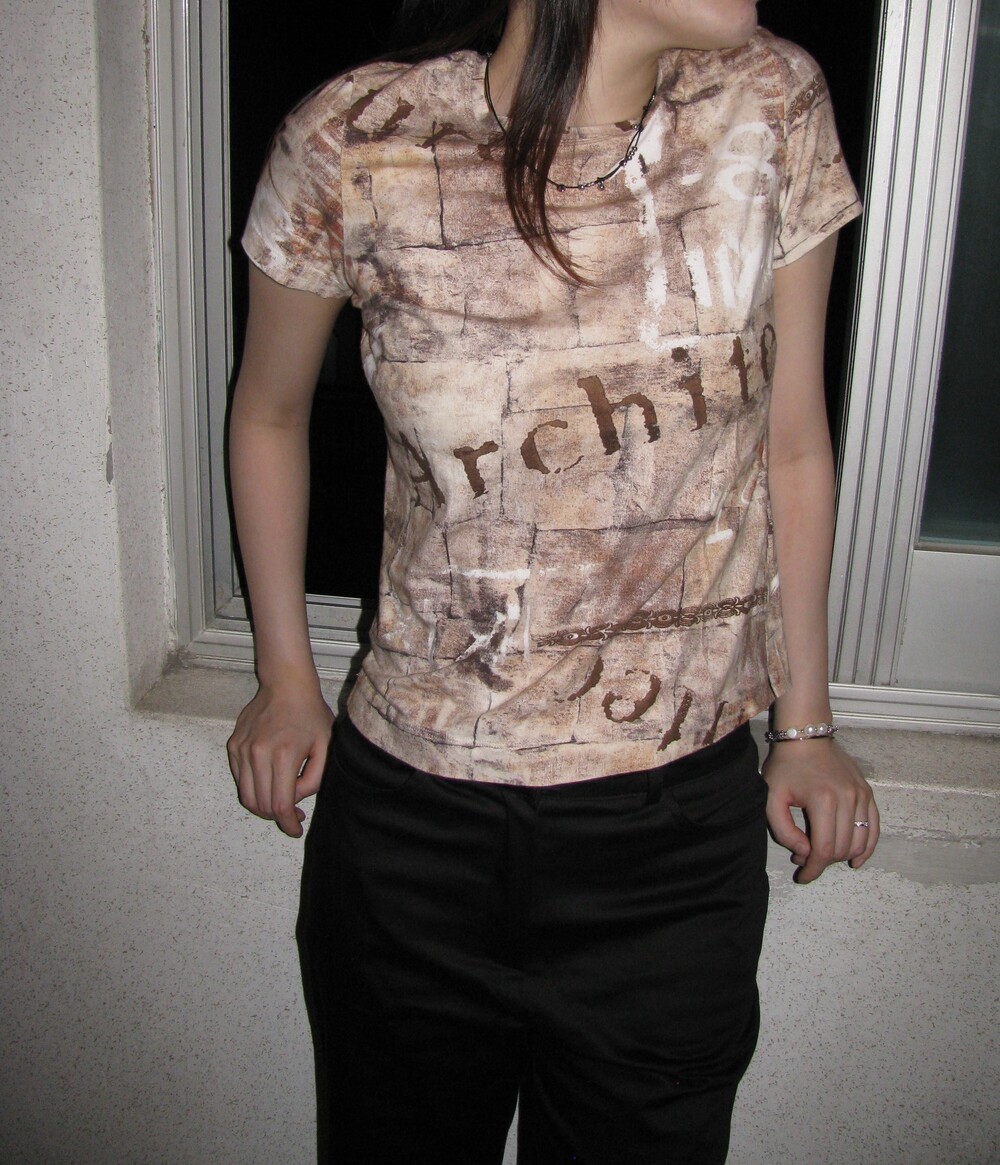 독특한 프린팅과 색감의 조화가 레어한 하프 티셔츠 입니다.