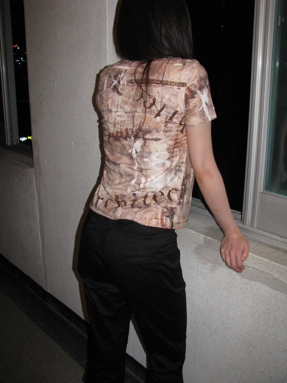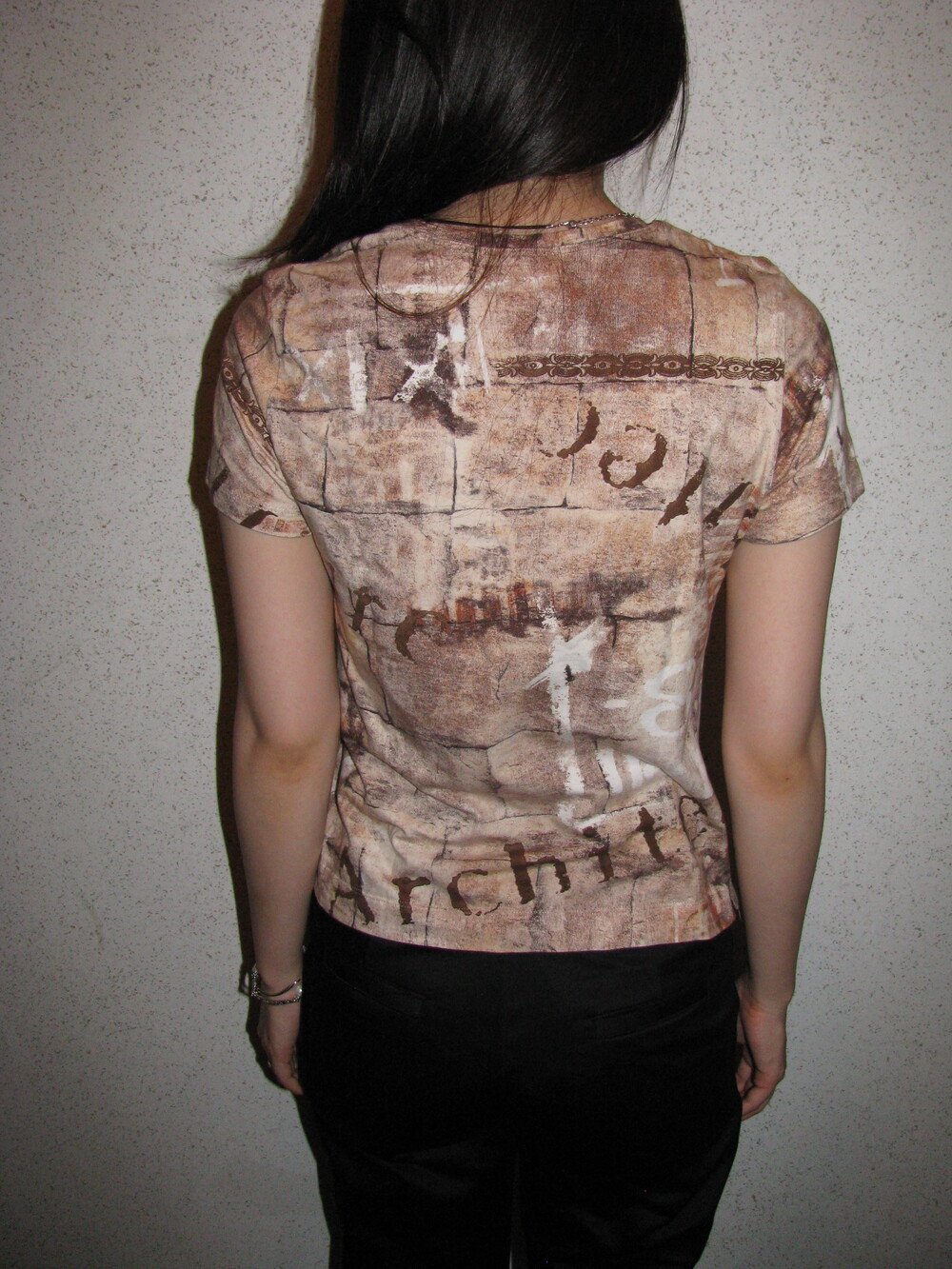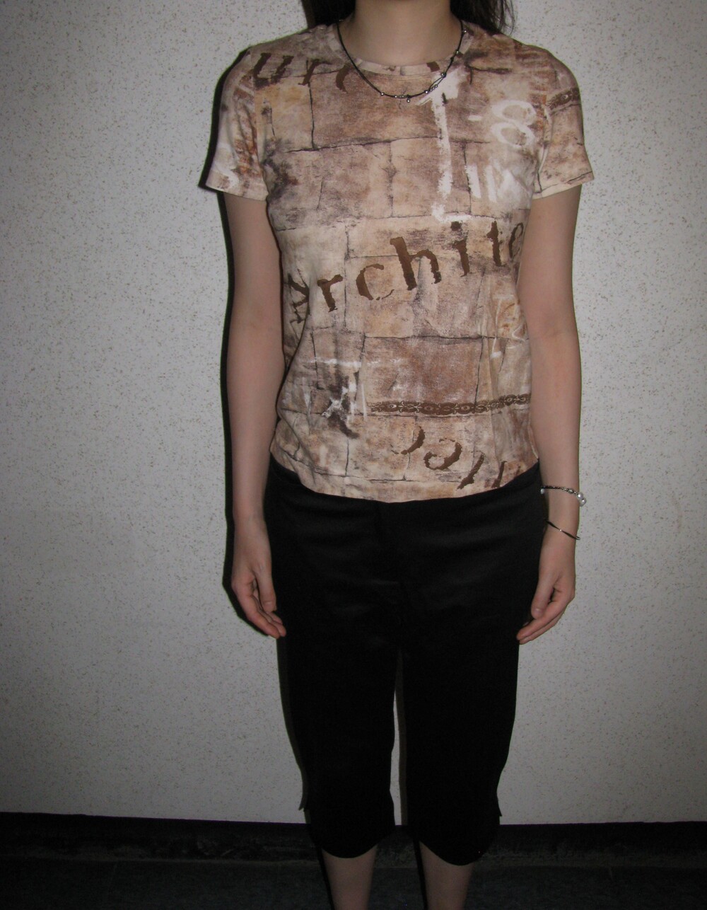독특한 프린팅과 색감의 조화가 레어한 하프 티셔츠 입니다.